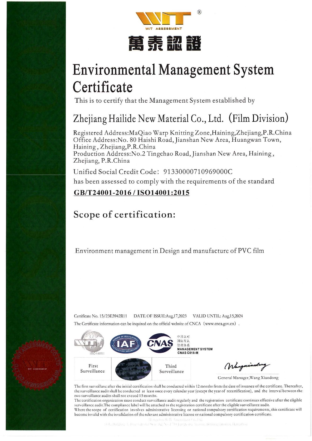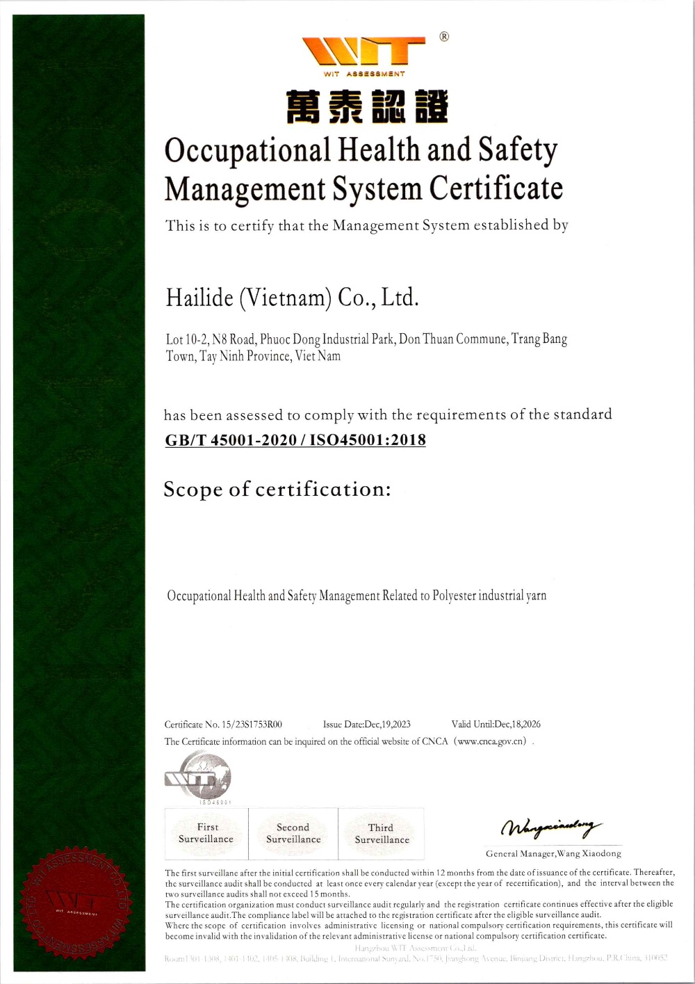 Company Name: HAILIDE (VIET NAM) CO., LTD